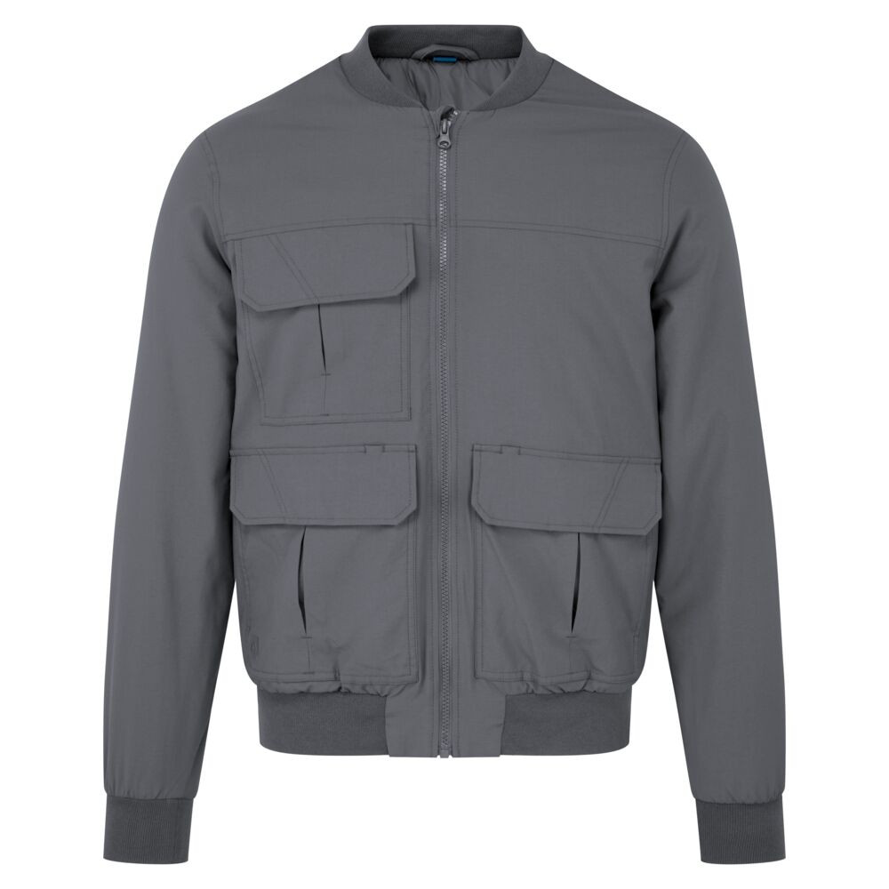 Rendkívül vízálló, PFAS-mentes Texpel Splash Eco szövetkikészítéssel (a víz lepereg a szövet felületéről), 6 sokoldalú, praktikus tárolózsebbel, biztonságos tárolást biztosító belső cipzáras zsebbel, kényelmes kialakítással, a fokozott védelem érdekében állvédővel, minden cipzárhoz kiváló tapadású húzóval és maximális kényelmet biztosító, teljesen gumírozott derékkal rendelkező bomber dzseki, amely teljesen bélelt és párnázott.