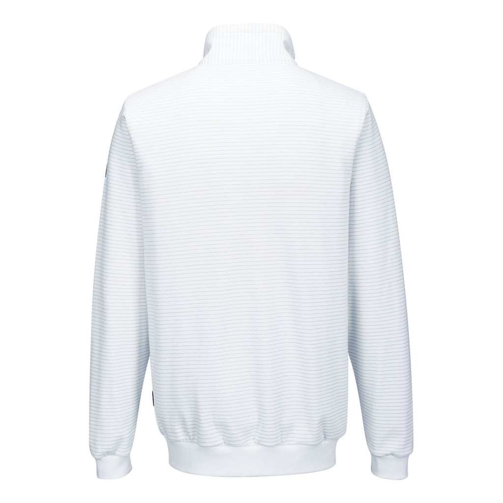 ESD környezetben történő használatra alkalmas melegítőfelső, amely az EN 61340-5-1 szabvány szerint tesztelt, extra komfortot nyújtó magas pamut tartalommal, a biztonságos tárolás érdekében 2 zsebbel, meleget és extra komfortot biztosító bordás mandzsettával, a kényelmes illeszkedésért bordázott szegéllyel, maximális kényelmet biztosító, teljesen gumírozott derékkal, szövetbe kötött szénszálakkal (ESD és antisztatikus tulajdonságokat biztosítanak) és CE minősítéssel rendelkezik.