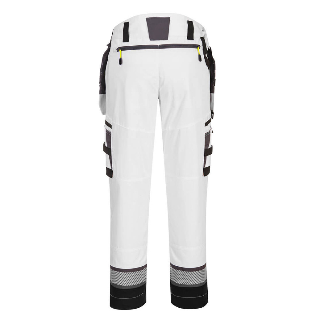 A DX4 lengőzsebes Portwest nadrág ergonómikus kialakítású mely dinamikus 4X stretch panelekkel biztosítja a maximális mozgásszabadságot. A nadrág emelt derék- és elasztikus oldalrésszel rendelkezik melyek kiváló komfortot biztosítanak minden munkapozícióban. Felülről behelyezhető térdpárna tartó zseb nagyméretű elülső és többfunkciós cipzáras zsebek biztosítják a telefon tollak és szerszámok biztonságos tárolását. A háromszoros varrások maximális tartósságot biztosítanak. UPF 50+ Új modell Vonalzótartó zseb Háromszoros varrás Kalapács hurok Egyedi innovatív zsebkialakítás Okostelefon tartó Többféle cipzáros rekesz Fényvisszaverő csíkozás Oldalt gumírozott derék Felső nyílású térdzsebek D gyűrű Többfunkciós tárolózsebek 16 zseb Hátsó cipzáras zseb Aktív illeszkedés Állítható szárhossz Minden fontos helyen megerősített Két rétegű térdvédő zsebek HiVisTex Pro fényvisszaverő szalag Megerősített panelek 4 utas rugalmas anyag Regisztrált európai közösségi design Modern ergonomikus kialakítás Magasított derék Ágyék erősítés cipzár húzó Portwest logóval