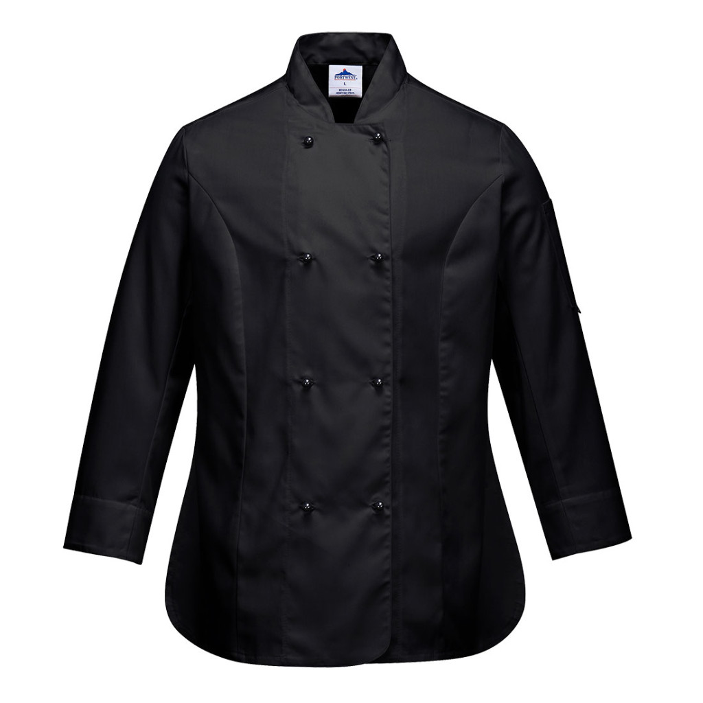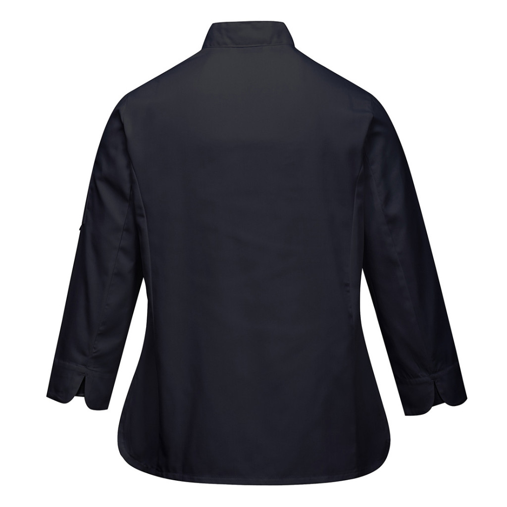 Kifejezetten hölgyek részére kialakított séfkabát mely a kényelem és funkcionalitás mellett kiválóan is illeszkedik. Oldal- mandzsetta- és MeshAir hónalj szellőző nyílásokkal. Stílusos kialakítás 4 sor megfordítható levehető gombokkal és praktikus zsebekkel rendelkezik.,Francia mandzsetta,Ujjzseb,Szellőzőnyílások,MeshAir™ szellőző hálós kialakítás,Mérettartó alapanyag,Tartós szövet,Négy soros gombolás