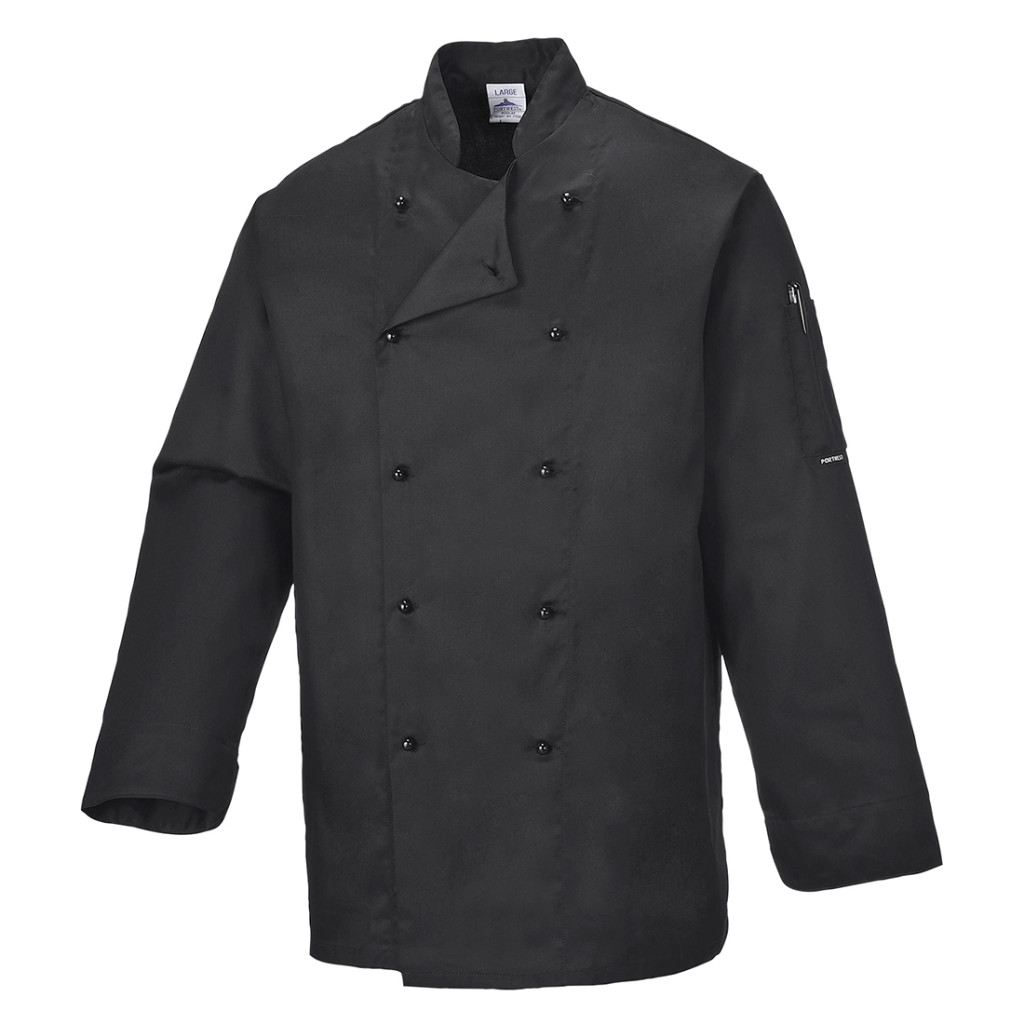 Divatos, 2 színben elérhető, magas minőségű, kopásálló, tartós alapanyagból készülő séfkabát, ami a mosások után is megtartja színét és méretét. Mandarin gallérral, szellőző mandzsettákkal és kifordítható gombolással rendelkezik. Ötsoros kivitelű, cserélhető gombokkal, valamint egy zsebbel, ami a biztonságos tárolást szolgálja. Többfunkciós, stílusos unisex fazonú munkaruha modell.