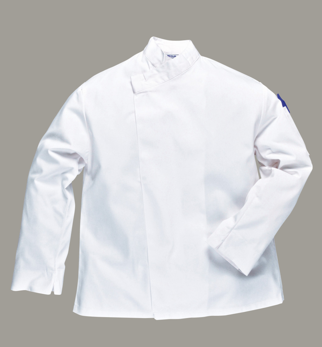 Stílusos és kifinomult séfkabát modellünk strapabíró anyagból, patentos kivitelben, tolltartó zsebbel ellátva.