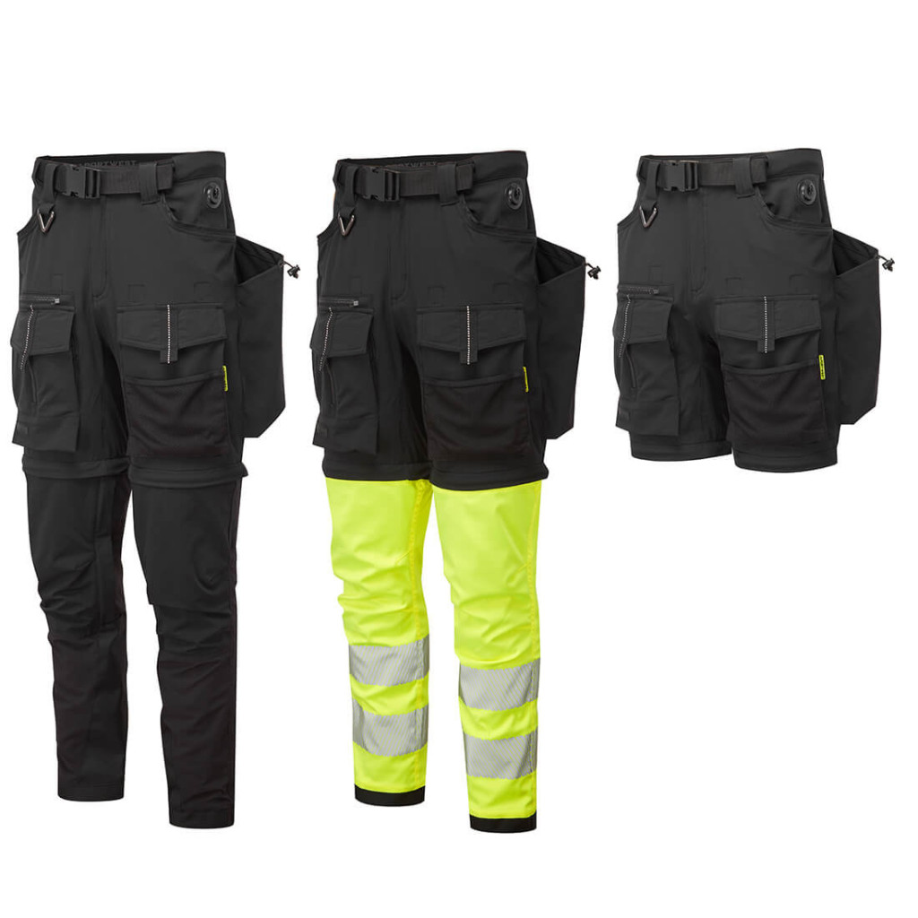 Az Ultimate Modular 3 az 1-ben nadrágkialakítás minden igényt kielégít. A 3 az 1-ben kialakítás a munkanadrágot rövidnadrággá vagy EN20471 1. osztályú munkanadrággá alakítja át. Mindened megvan, amire szükséged van Zsebek mágneses patentokkal vannak ellátva, hogy ne legyenek útban, térdpárna zsebek, nagy beépített oldalsó zsebek a nagy szerszámok, spray dobozok számára, vagy csak hajtsd fel a lábakat rövidnadrágos üzemmódban, és tartsd őket biztonságban. Beépített derékpánt, Lábszár elülső cargo zseb a könnyebb használatért munka közben, Hálós mobiltelefon zseb. Plusz az egyedülálló klipszes zsebrendszer a három zseb használatával, amelyeket a nadrág elejére vagy hátuljára lehet klipszelni. 4 irányban nyúló anyag a nagyobb mozgásszabadság és a kényelem érdekében. Slim fit design a kivételes komfortért, 15 sokoldalú, praktikus tárolózsebbel. Állítható derékrész a tökéletes illeszkedésért. B920,B921, B922 cikkszámon moduláris kiegészítő zsebek rendelhetőek.